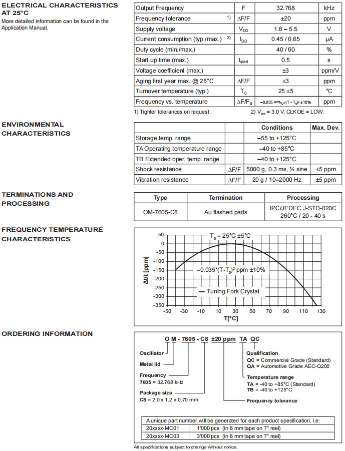 CC1V-T1A-307.20kHz-4pF-100PPM-TC-QC | Micro 晶振 | 晶體 307.200 kHz 4.0 pF 100 PPM -55/+125C | Crystals |