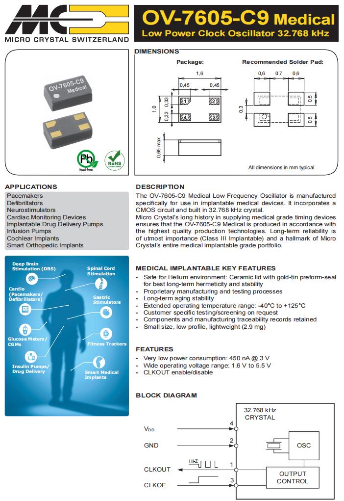 MS1V-T1K-32.768kHz-9pF-20PPM-TA-QC-Au | Micro 晶振 | 晶體 32.768 kHz 9.0 pF +/-20 PPM -40/+85C | Crystals |