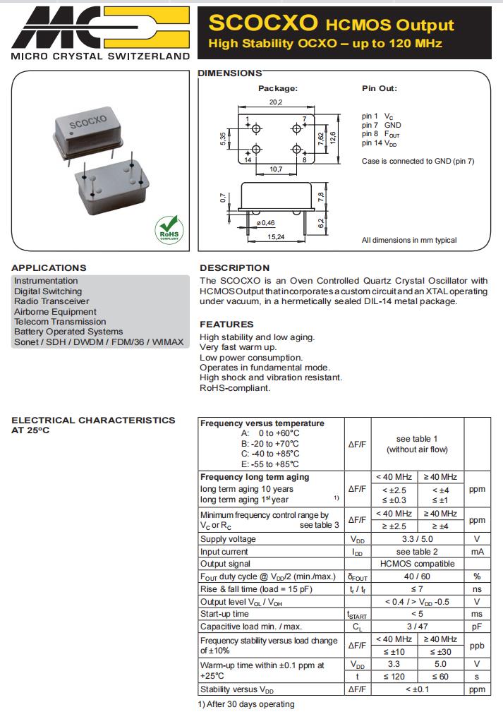 SCOCXOW-EV3-25.000MHz-D2|高穩(wěn)定性晶振|6G發(fā)射器晶振,Micro晶振,SCOCXO有源晶振,SCOCXOW-EV3-25.000MHz-D2晶振,恒溫晶振,頻率25MHz,電壓3.3V,頻率穩(wěn)定性0.3ppm,工作溫度-55~85°C,高穩(wěn)定性晶振,低老化晶振,6G發(fā)射器晶振,電信傳輸晶振,電池供電系統(tǒng)晶振,Sonet晶振.