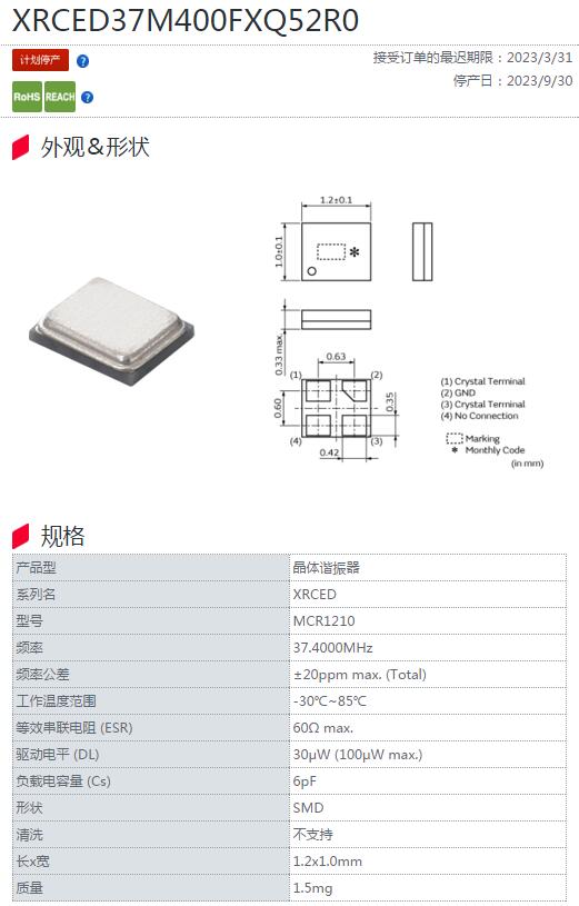 MEMS硅晶振與石英晶振區別:進口MURATA晶振,XRCED37M400FXQ52R0晶振,1210四腳諧振器