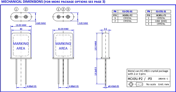 ●傳統的HC-49/U封裝,2或3引腳,SMD形式可用
