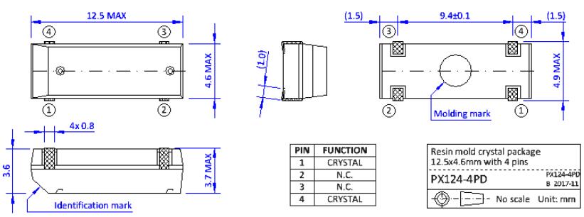 ●SMD樹脂模具封裝尺寸12.5 x 4.6 x 3.6mm, 4個j型引線