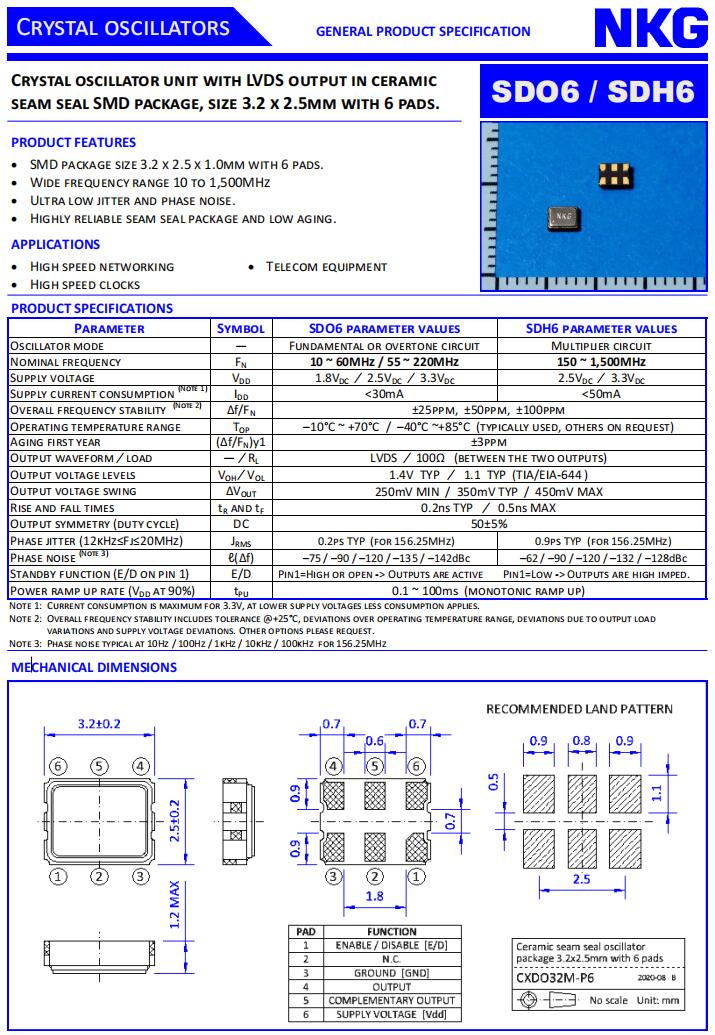 NKG Crystal|SDO6-8-B-125.00-WNS-EXT|LVDS晶振特點(diǎn)