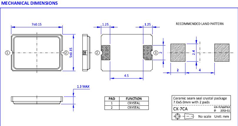 香港NKG晶振|S7CA40.000F20M23-EXT|7050無(wú)源晶振尺寸圖