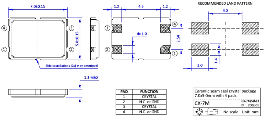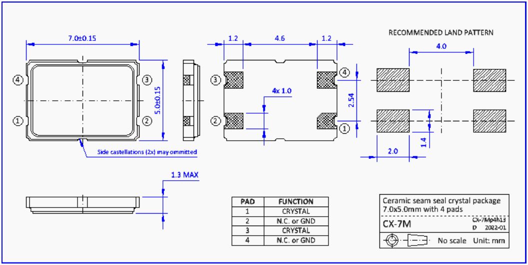 NKG進口晶振|S7M26.000F16E1Y-EXT|7050抗震晶振規格表
