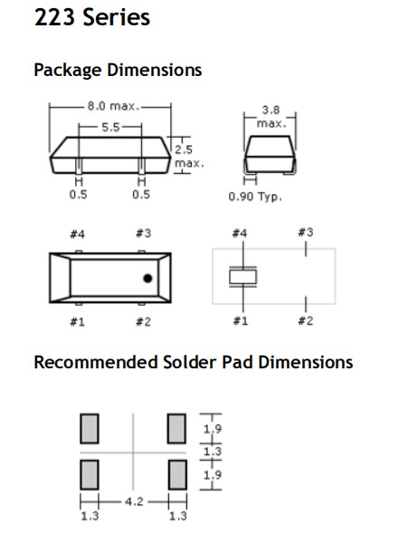 奧斯康利晶振,223-000306-20-LF,6G網絡終端晶振尺寸圖