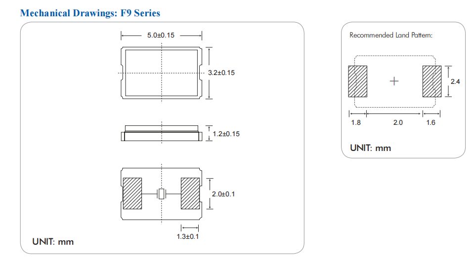 F92500042 | Diodes晶振 | F9 | 25MHz | ±50ppm | ±20ppm | 18pF | -20°C ~ 70°C |