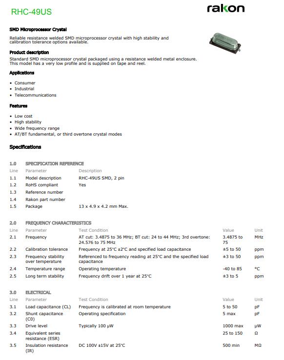 瑞康晶振,RHC-49US晶振,49US貼片晶振