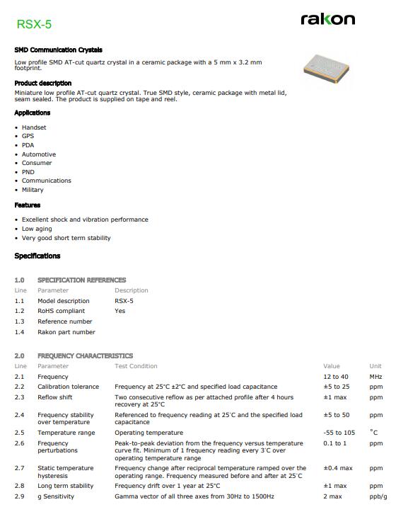 瑞康晶振,RSX-5晶振,5032小尺寸晶振貼片石英晶體,體積小,焊接可采用自動貼片系統,產品本身小型,表面貼片晶振,特別適用于有小型化要求的電子數碼產品市場領域,因產品小型,薄型優勢,耐環境特性,包括耐高溫,耐沖擊性等,在移動通信領域得到了廣泛的應用,晶振產品本身可發揮優良的電氣特性,滿足無鉛焊接的高溫回流溫度曲線要求.