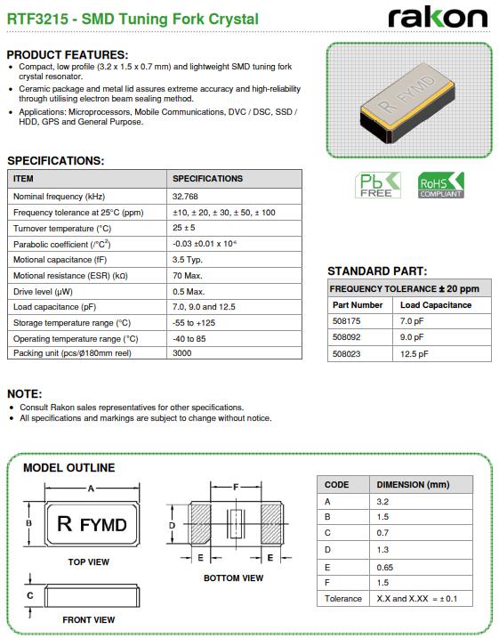 Frequency | 32.768KHZ |
