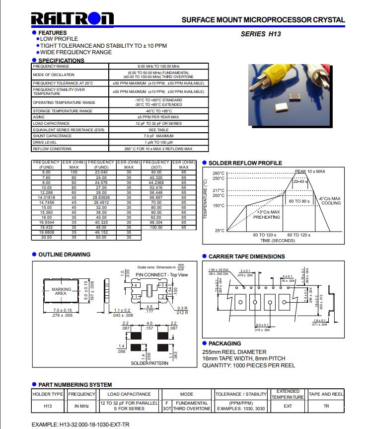 H13-29.000-16-5050-EXT-TR | H13 | 29.000MHz | 7.0 x 5.0mm | ± 50 ppm | ± 50 ppm | 16 pF | -40°C~+85°C |
