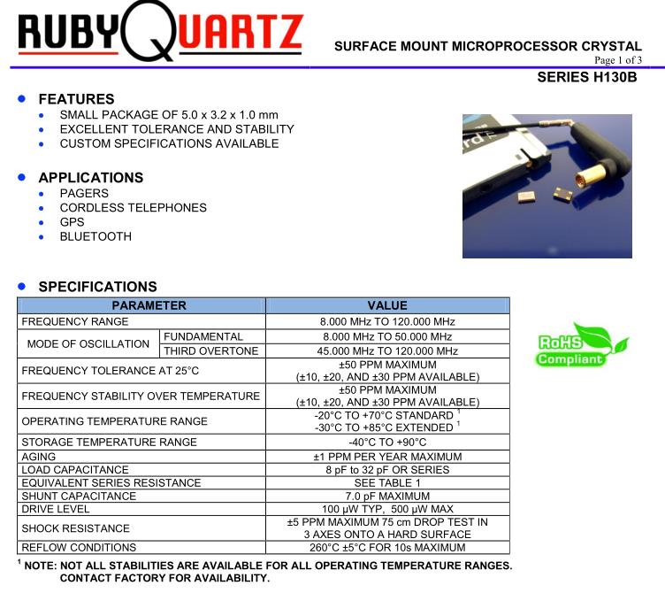 H130B-8.000-18-3030-EXT-TR | H130B | 8.000MHz | 5.0 x 3.2mm | ± 30 ppm | ± 30 ppm | 18 pF | -40°C~+85°C |