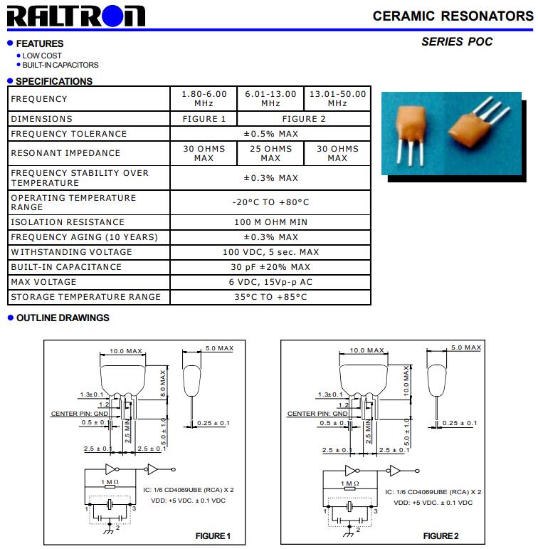 拉隆晶振,POC系列晶振,三腳插件晶振是指晶振內部本身有自帶負載電容的陶瓷諧振器,"壓電陶瓷晶振”, 與CR,LC電路不同,陶瓷振蕩子利用的是機械諧振而不是像壓電石英晶體一樣電諧振的方式起振.這意味著它基本_上不受外部電路或電源電壓波動的影響從而可以制作成無需調整的高度穩定的振蕩電路作為微處理器在電路中使時鐘振蕩器的匹配最適合的元件,并且得到了廣泛應用.ZTT三腳晶振產品系列可用于振蕩電路設計,無需外負載電容器既獲得了高密度安裝,又降低了成本.產品被廣泛應用到數碼電子產品,家用電器,比如電話機,游戲機等電子產品.