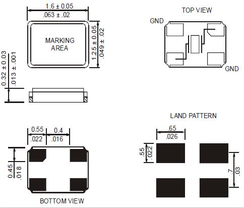 Raltron晶振,R1612-25.000-9-F-1010-TR,6G模塊晶振尺寸圖