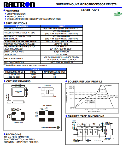 R2016-16.000-9-1010-TR-NS1 | R2016 | 16.000MHz | 2.0 x 1.6mm | ± 10 ppm | ± 10 ppm | 9 pF | -20°C~+75°C |
