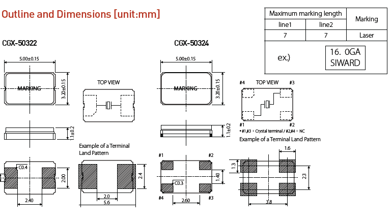 臺灣希華晶振,CGX-50324晶振,5032四腳晶振在生產時,不同晶振廠家在材料選擇上也不同,目前3225晶振主要采用用金屬,也有用陶瓷,市面上金屬使用更多,成本也相對更高一些.