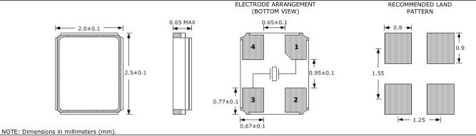 SXT22410AA07-25.000M | 2.5X2.0 SMD (4 PAD) CRYSTAL | 10pF | ±50ppm | 25.000M |