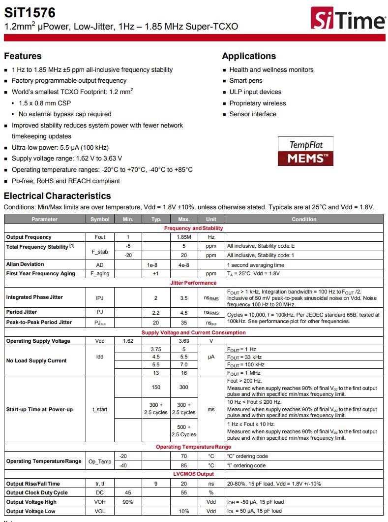 SiTime硅晶振,SiT1576晶振,TCXO晶振