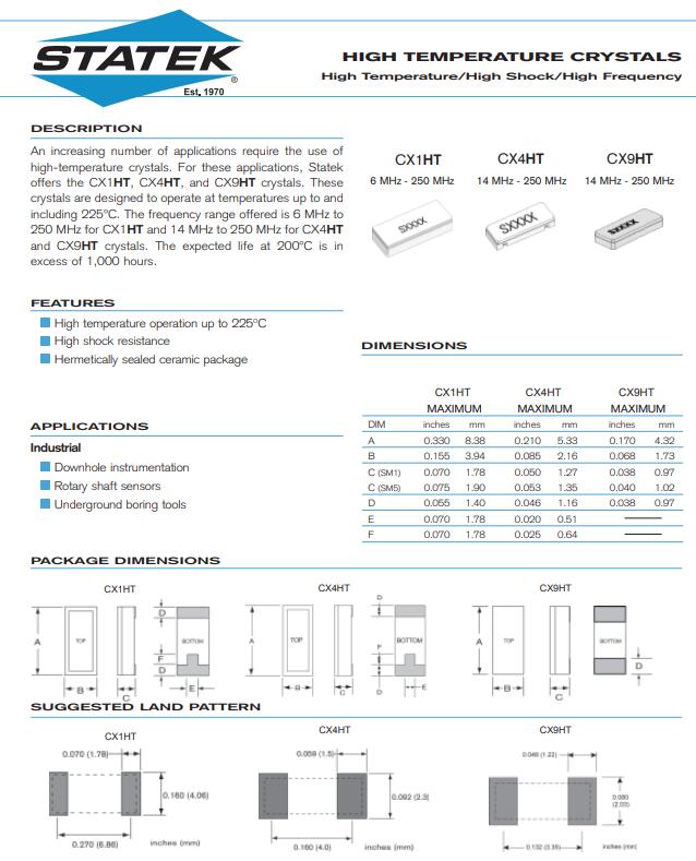 STATEK晶振承諾保護環(huán)境,重視員工、客戶和公眾的健康和安全.我們從事任何活動,都要以注重安全和環(huán)保方式,并考慮到生態(tài)系統(tǒng)的復雜性和相關(guān)性.美國STATEK晶振,CX4HT型號晶振,5020晶體諧振器