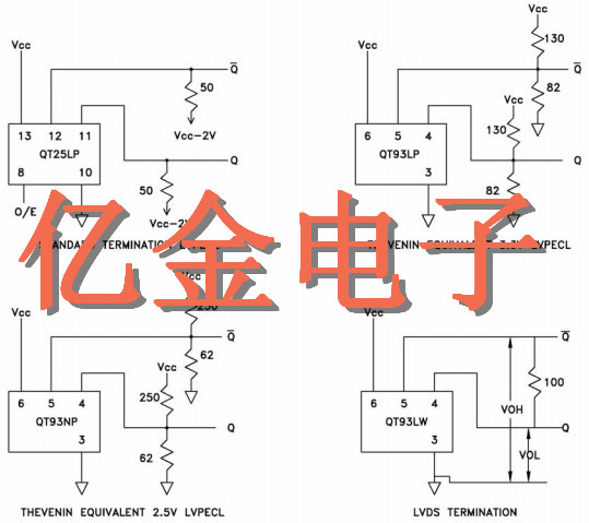 戴維寧終端最常用于負載的PECL邏輯阻抗為50Ω.