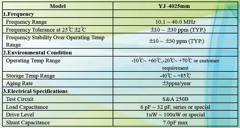石英晶振4025規(guī)格
