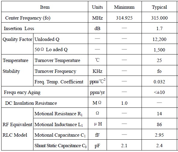 陶瓷濾波器R315規格