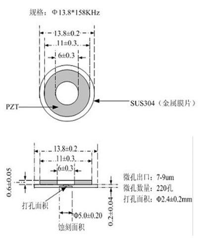 霧化片,微孔霧化片13.8mm-158K,帶線膠圈霧化片,超聲波霧化片