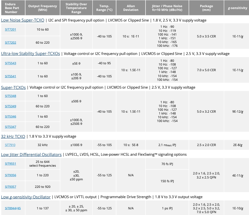 Endura 產(chǎn)品在工廠編程為客戶特定的配置,消除了與石英產(chǎn)品相關(guān)的漫長(zhǎng)交貨時(shí)間和定制成本。所有 Endura 振蕩器均通過(guò) SiTime Endura 工藝流程進(jìn)行 100% 篩選,以現(xiàn)成的價(jià)格保證性能,并為航空航天和國(guó)防應(yīng)用提供保修。