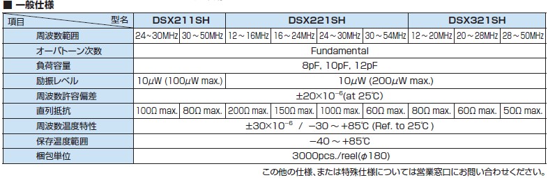 ±80×10-6 max /-40~+125℃ ±50×10-6 max /-40~+125℃ ±50×10-6 max /-40~+85℃ ±30×10-6 max /-40~+85℃ ±25×10-6 max /-20~+70℃ ±20×10-6 max /-20~+70℃ (-10~+70℃標準工作溫度范圍) |