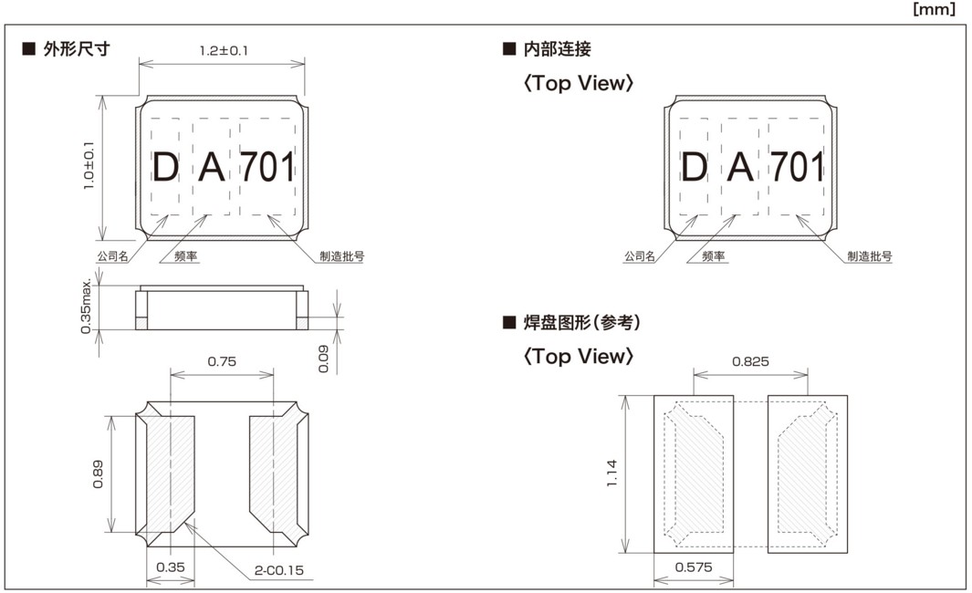 32.768K晶體諧振器,最小體積石英晶體,DST1210A石英晶振特點,可穿戴設備晶振,DST1210A石英晶體諧振器型號是世界上體積最小,最薄的KHZ晶體諧振器32.768K晶振,長為1.2mmX寬為1.0mm的尺寸、厚度0.35mm max.DST1210A,無與倫比的小、薄如紙片、輕如鴻毛采用陶瓷外殼金屬蓋封裝,在產品中使用精度高不會隨著環境的變換而出現不穩定的情況,精度溫度性強使用可靠性高.