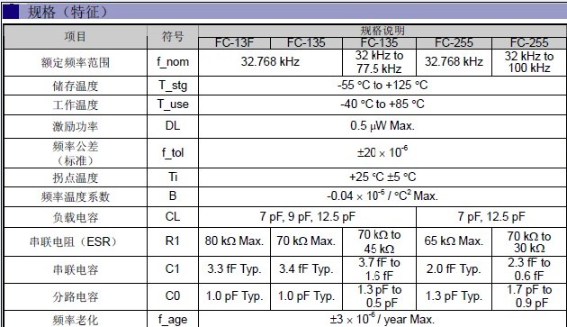 愛普生晶振FC135規(guī)格圖