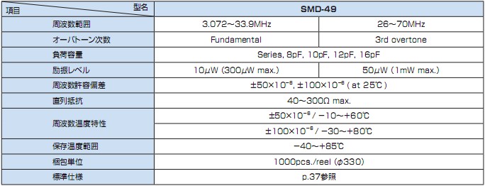 SMD-49S貼片型晶體元件。 大量的標準頻率。 高頻率晶振和低等效串聯電阻。 高批量生產能力。 應用于,機頂盒,玩具、游戲機的最佳選擇。 符合RoHS/無鉛。