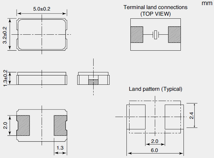 頻率公差 | Max. ±25 ×10-6 | Max. ±50 ×10-6 | Max. ±100 ×10-6 | |