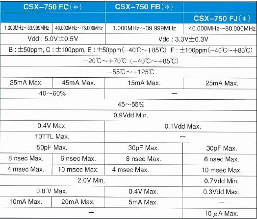 振蕩器CSX750F規(guī)格