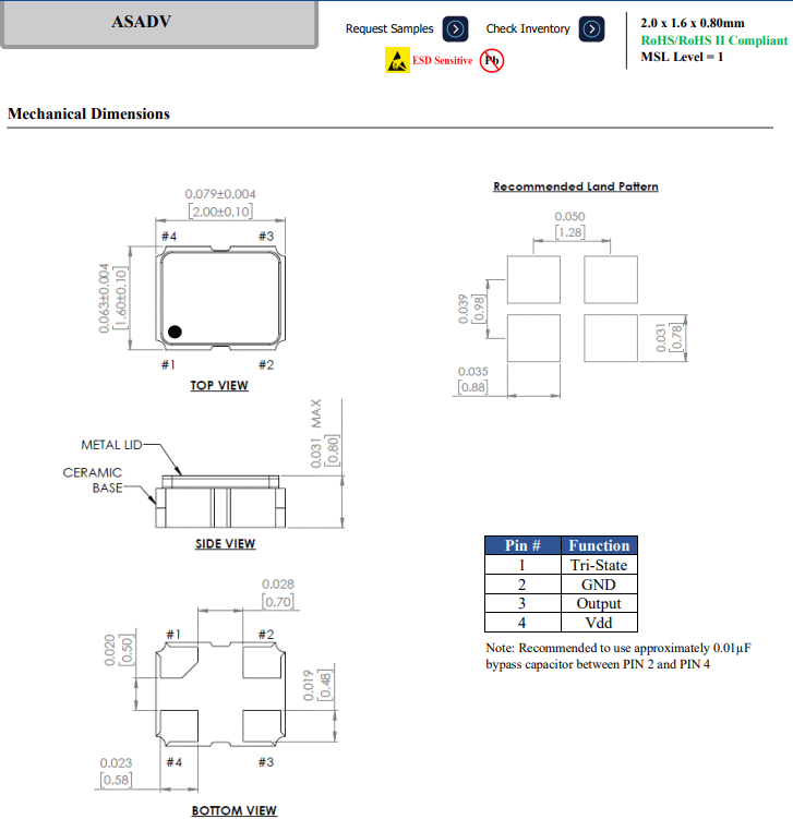 ASA2-25.000MHZ-L-T | Abracon晶振 | ASA | 25MHz | HCMOS | 1.8V | ±50ppm |