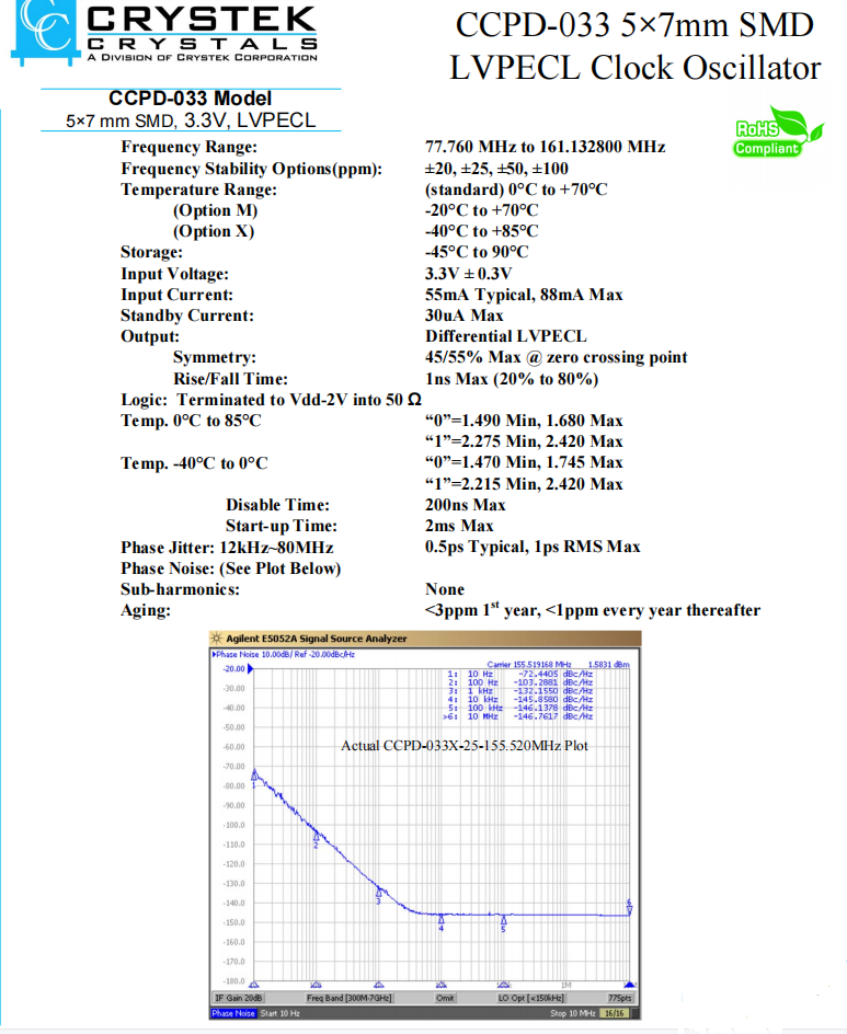 CCPD-033X-25-155.520 | Crystek晶振 | CCPD-033 | XO (Standard) | 155.52MHz | ±25ppm |