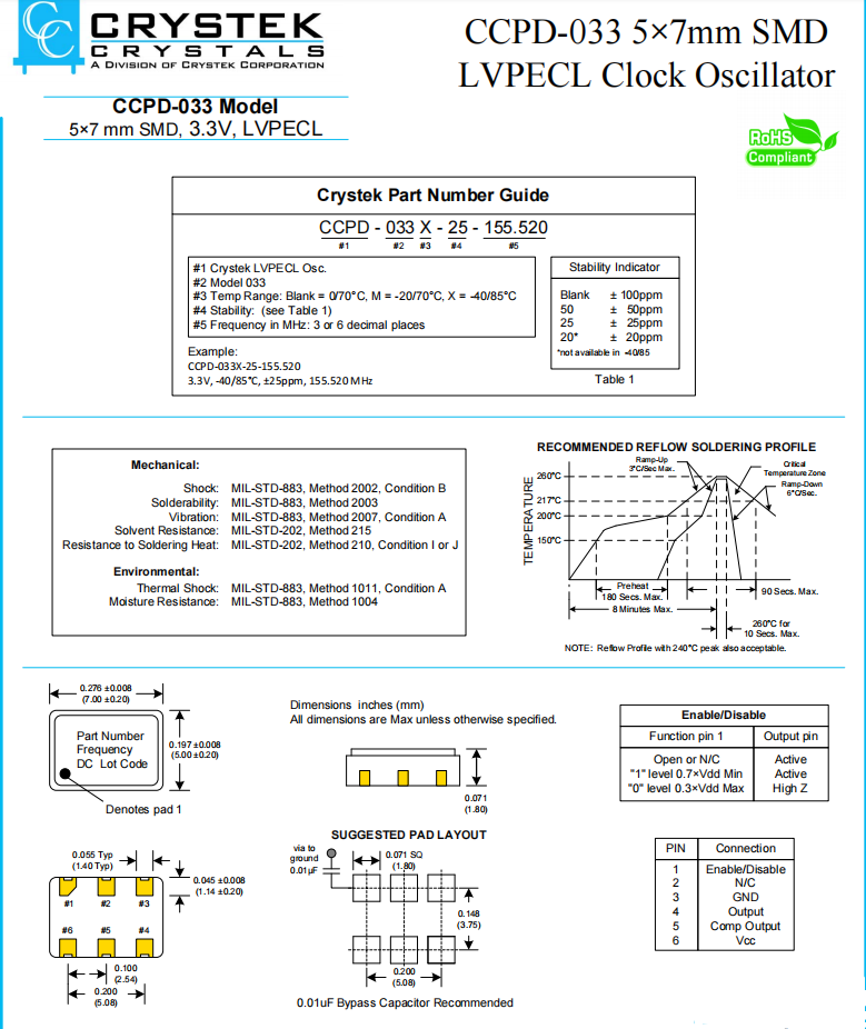 CCPD-033-50-155.520 | Crystek晶振 | CCPD-033 | XO (Standard) | 155.52MHz | ±50ppm |