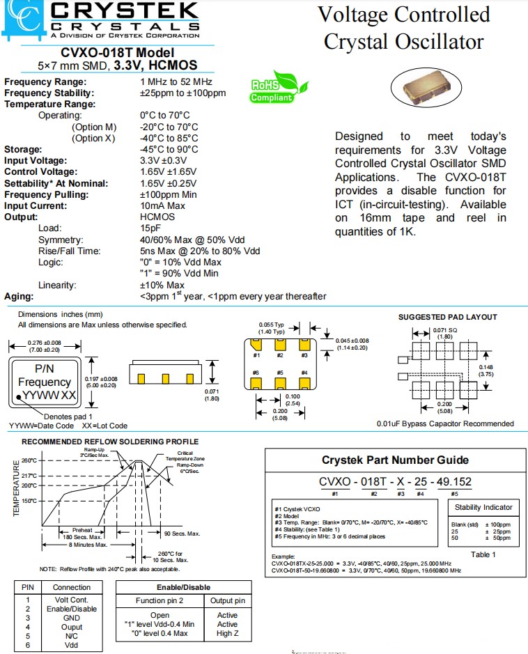 CVXO-018TX-50-25 | Crystek晶振 | CVXO-018T | VCXO | 25MHz | ±50ppm |