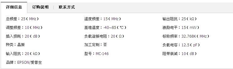 打開億金官網首頁橫條鼠標放在進口晶振自動彈出一串關于進口晶振子分類,找到愛普生晶振點擊進入可以看到愛普生進口產品相關圖片,滾動鼠標點擊第二頁可見MC-146愛