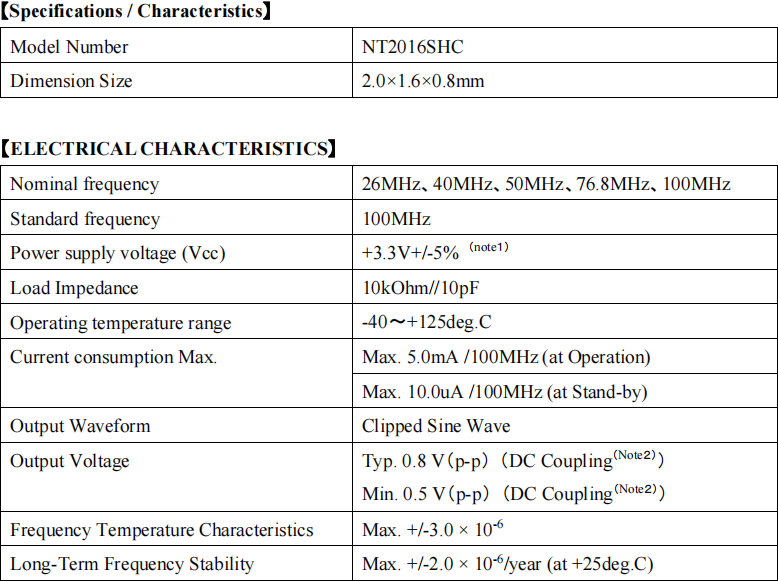 業界首創高溫操作(+125°C)高頻(高于100MHz)2016尺寸TCXO,NT2016SHC-125.000000MHZ-NSC5389A晶振