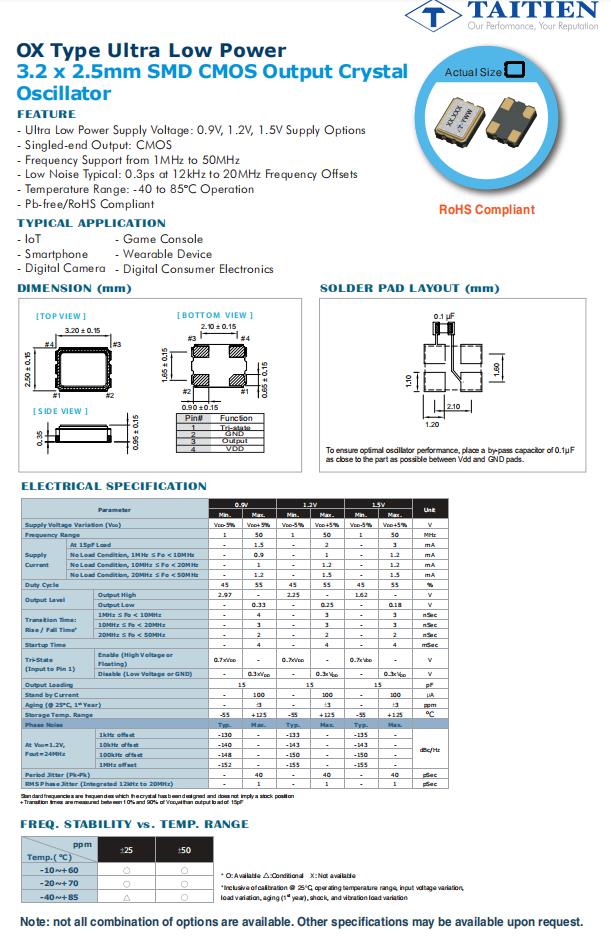 OXETDLJANF-50.000000 | 泰藝晶振 | OX | XO (Standard) | 50MHz | 2.8V |