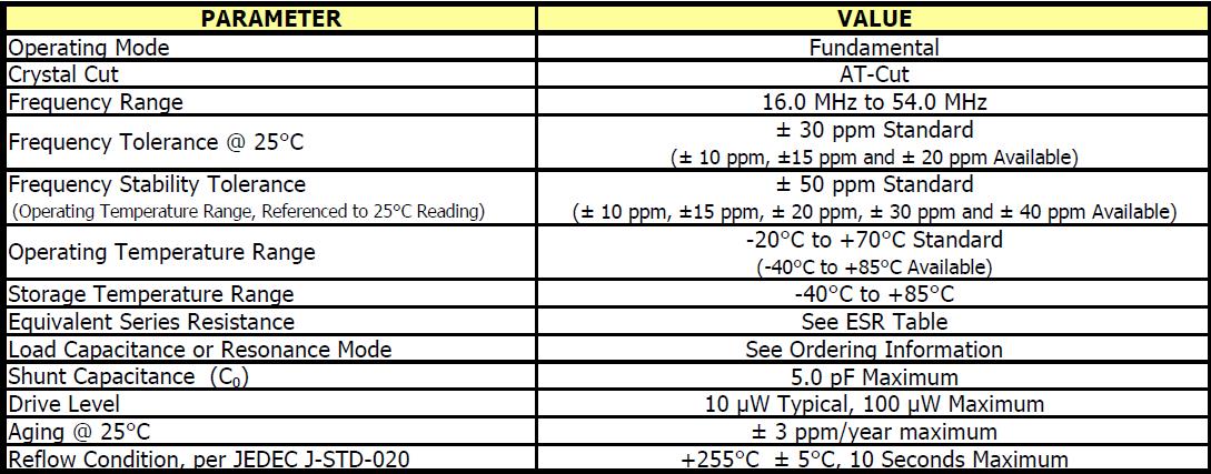 原廠編碼 | 尺寸 | 負載 | 頻率公差 | 工作溫度 | 頻率 |