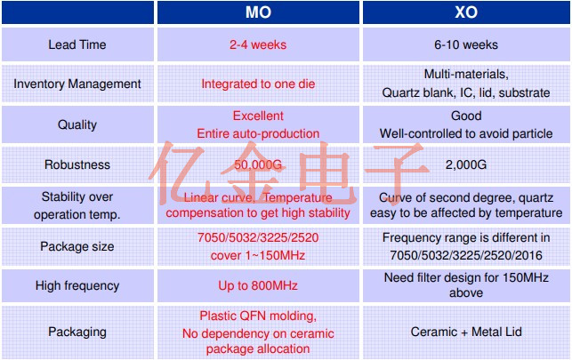 什么是MO?MO代表“MEMS振蕩器”.基于MEMS(微電子機械系統)的定時解決方案,擁有良好的頻率穩定性能.臺灣晶技MEMS振蕩器與XO振蕩器的BOM結構不同