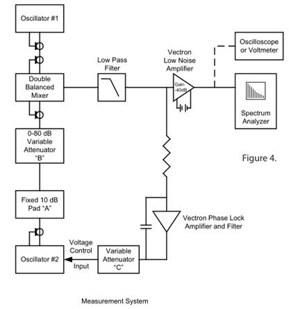 通過將石英晶體振蕩器機械地調節到相同的頻率,振蕩器被鎖相到正交.當混頻器輸出為0Vdc時,指示兩個石英晶體振蕩器之間所需的90度相位差.臨時連接到頻譜分析儀的示波器或零中心電壓表是監測正交進度的便捷方式.PLL的工作帶寬必須遠低于感興趣的最低偏移頻率,因為PLL部分地抑制了其帶寬中的相位噪聲.廣泛使用的建立適當環路帶寬的經驗方法是通過衰減器“C”逐步衰減電壓控制反饋.通過在推進衰減器“C”的同時比較感興趣的最低偏移頻率處的連續噪聲測量,可以找到操作點,其中測量的相位噪聲不受衰減器設置的變化的影響.此時,環路帶寬不是測量的相位噪聲的因子.