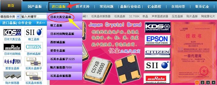 如上圖1第一步,打開億金官網(wǎng)http://www.worldtalentltd.com之后鼠標(biāo)放進(jìn)口晶振會出現(xiàn)粉色底一欄,可以看到都是日本進(jìn)口品牌的標(biāo)簽,客戶只知道是KDS品牌和體積,第二步,鼠標(biāo)點擊日本大真空晶體那一欄.