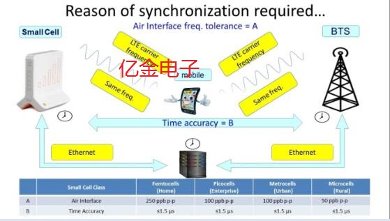 小型蜂窩基站是一種小量用戶端通信基站,其主要作用就是為網絡通信社區減輕一定的負荷,在圖一和圖二中就能夠清楚明了的看出來;其中圖一展示了小型基站用于補充現有基站無法覆蓋的死區(實施前紅色區域)的通信質量(橙色區域),圖二則是表示小型基站可以覆蓋現有基站所覆蓋的流量溢出區域. 小型基站,從其名字就能夠看得出來,這種基站小巧且易于安裝,與現代化基站相比,它的運行成本低時最大的優點,但是為了適應未來業務量的增長,為了有效利用有限的頻譜,LTE通信方案由FDD逐步演化為TDD,但在這種情況下,所需的精度時鐘就會非常高.所以如果采用TDD方案,為提高終端的接收質量,那么基站和小基站之間要求精確的”頻率同步”,和”時間同步”,如圖3所示